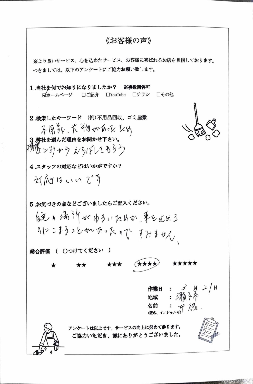 何でも回収してくれるので助かりました』